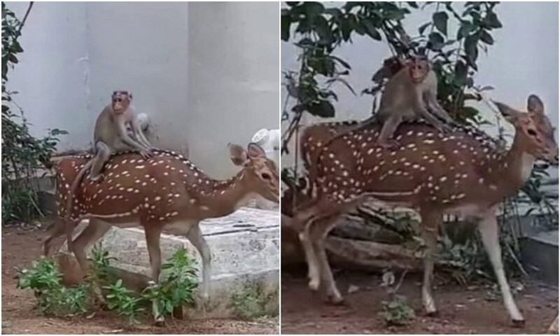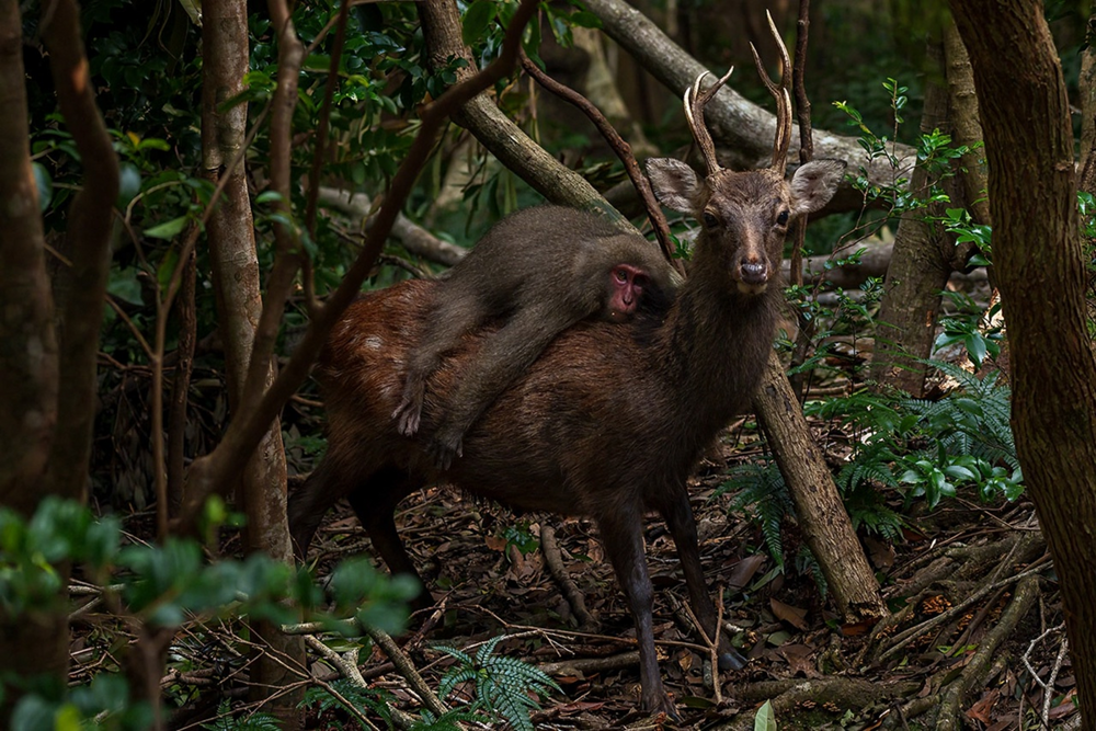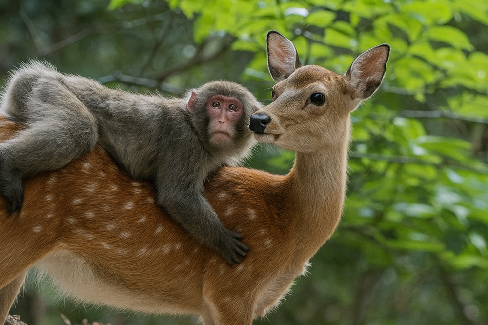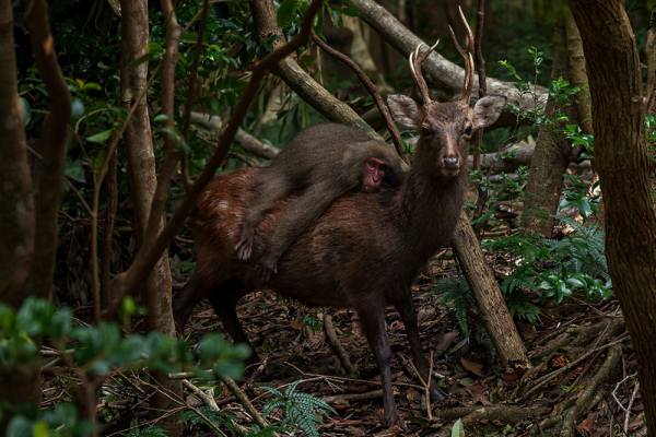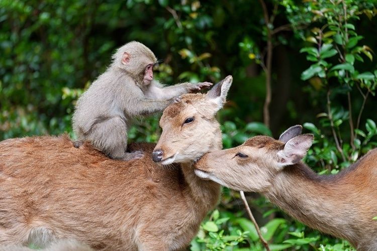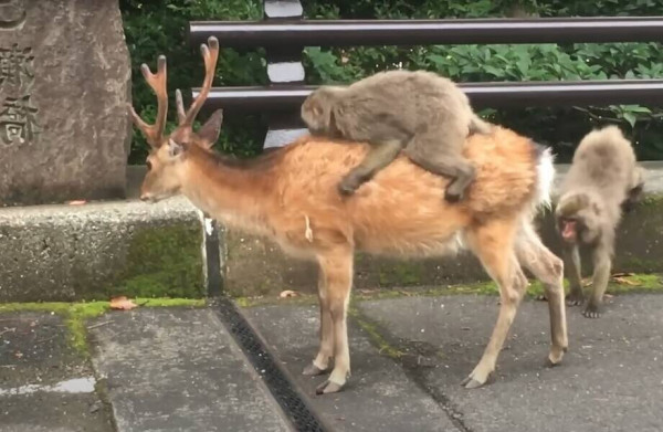 В Японии обезьяны катаются верхом на оленях так, будто они их персональное такси. В продолжении поста вы узнаете об этом неожиданном союзе.