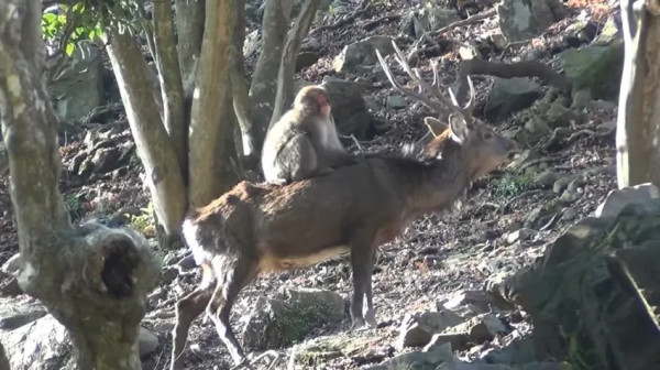 Верховую езду макаки освоили совсем недавно: первые катания японских обезьян верхом на оленях были зафиксированы только в 2010 году. Но вот рогатые к своим наездникам присматривались давно: обезьяны периодически роняют с деревьев фрукты и сочные веточки, до которых сами олени добраться не могут. А ещё они оставляют фекалии, которые богаты азотом и витамином B12 - их травоядным вечно недостаёт. Поэтому олени частенько следуют за стадами обезьян и пользуются "плодами" их трудов.