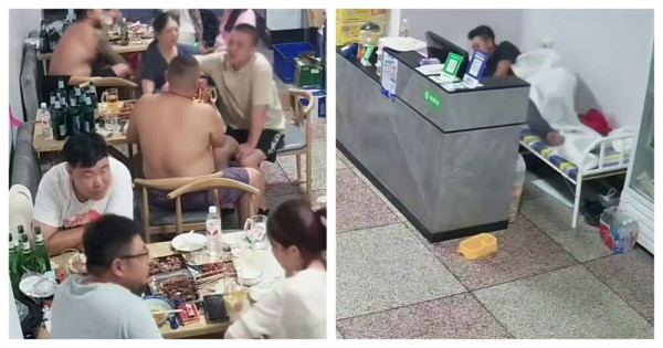 В Китае закусочные часто открыты допоздна, а их владельцы работают не покладая рук. Однако этот мужчина из провинции Ляонин нашел выход: вместо того, чтобы дожидаться, когда все посетители закончат есть и разойдутся, он лег спать прямо за кассой - время было далеко за полночь.Гостей владелец заведения попросил рассчитаться за блюда самостоятельно, а когда они будут выходить, выключить свет. В Китае это не диковинка: порой заведения или торговые лавки оставляют на "самообслуживании" и никто не уходит, не оплатив.