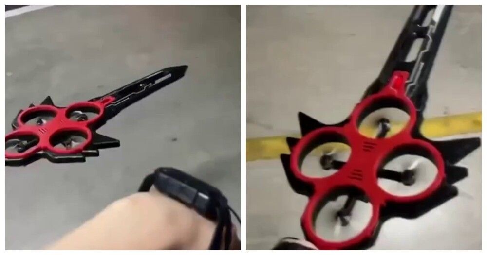 Житель Китая собрал дрон в форме меча. Устройство управляется жестами, которые считывает специальный сенсорный браслет.