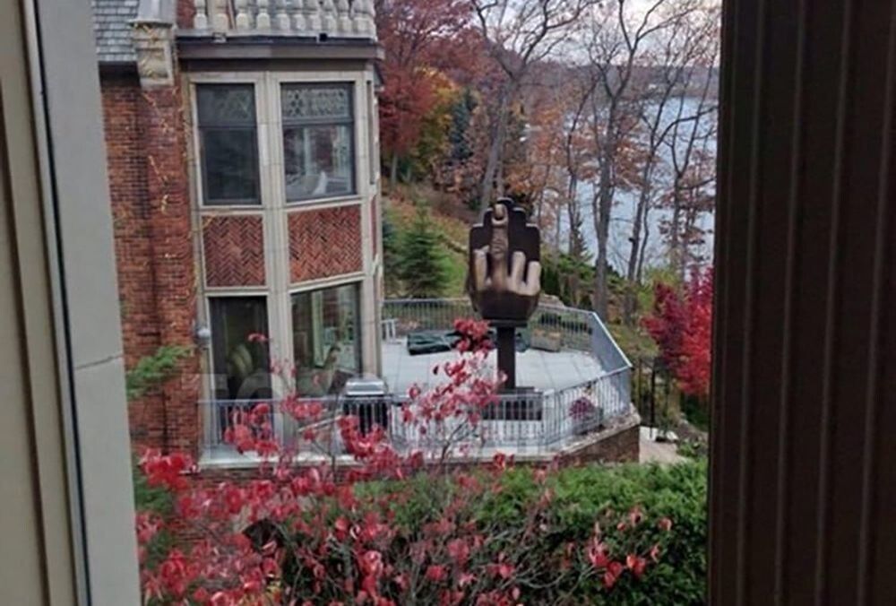 Конфликт с бывшей супругой достиг такого накала, что мужчина решился на крайне эксцентричный поступок. Он стал ее соседом, купив рядом дом, и установил необычную статую - четырехметровый бронзовый средний палец.