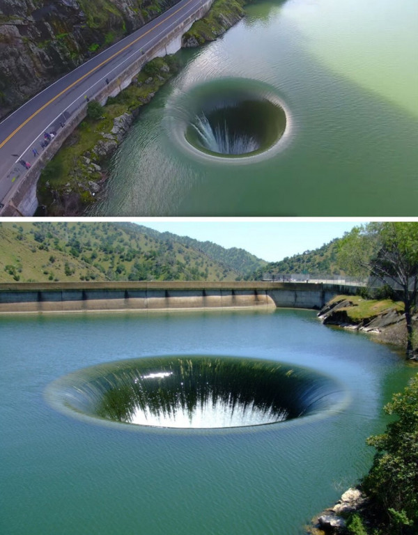 Эта плотина стала известна во всем мире благодаря уникальному гидросливу, который выглядит, как огромная воронка диаметром 22 метра и глубиной 21 метр. Установлен этот водосброс посреди искусственного озера Берриесса.