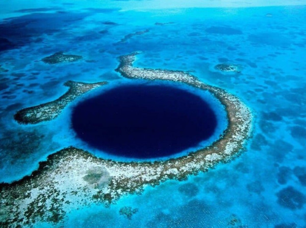 Фото гигантской голубой дыры в Белизе, которая образовалась естественным путем. Ее еще называют Кладбищем дайверов