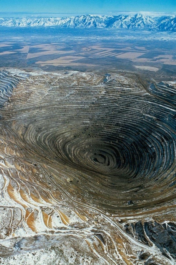 Это гигантское меднопорфировое месторождение было открыто в 1906-м году. Его площадь составляет 9 км², глубина - 1,2 км.