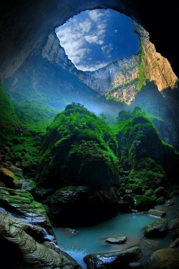 Фантастически красива самая глубокая в мире карстовая впадина, называемая "Небесной ямой", Китай