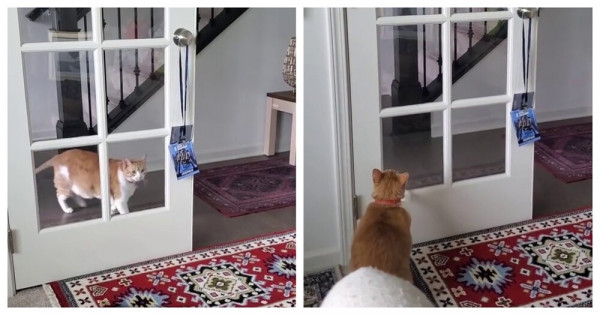 Женщина запечатлела свою рыжую кошку, которой не даёт покоя одна из дверей в доме. Полумера в виде другой открытой двери рядом проблему не решает.