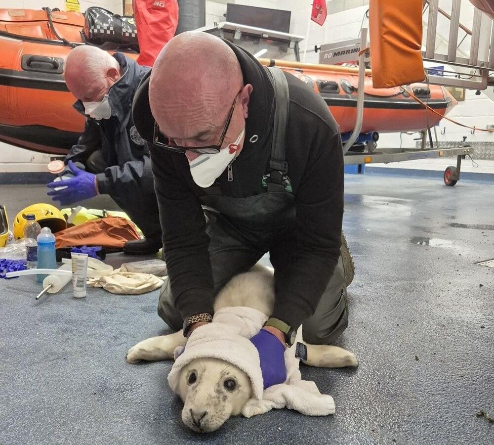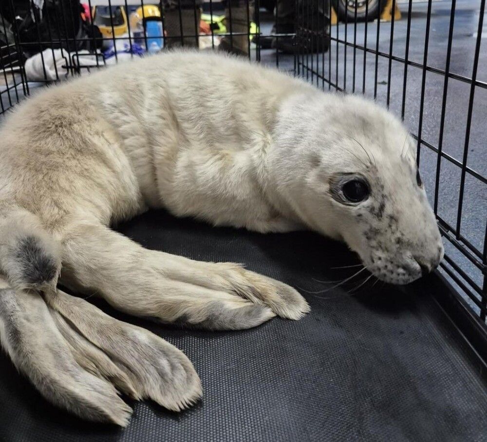 Новорождённого тюленя унесло от матери во время шторма. Его нашли на скалах у спасательной станции RNLI в Порткоуле, Уэльс. Детёныш страдал от голода, на ластах и подбородке были раны.
