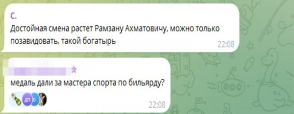 Давненько в СМИ не мелькал Адам Кадыров - пора исправлять эту недоработку. Недавно обладатель самой большой коллекции государственных наград Кадыров-младший сыграл с отцом в бильярд. И - -ожидаемо - выиграл.Глава Чечни сообщил, что когда-то в молодости был неплохим игроком, а сейчас ему "пришлось уступить победу более молодому и явно натренированному сопернику"."Давно не держал кий в руках. В молодости очень увлекался бильярдом, играл часто и, честно говоря, неплохо. Партия, на удивление, получилась живой и очень динамичной. Адам показал уверенную и грамотную игру. Видно, что далеко не новичок в этой игре. С Адамом действительно интересно играть - есть азарт, конкуренция, спортивный настрой. Поэтому, как и в случае с шахматным поединком с министром ЧР по физической культуре и спорту Ахматом Кадыровым, обязательно будет реванш", - написал Р.Кадыров под роликом в своём Телеграм-канале.Неизвестно, грядёт ли по этому случаю новое награждение Адама Кадырова, но пользователи сети считают, что он явно заслужил медаль.