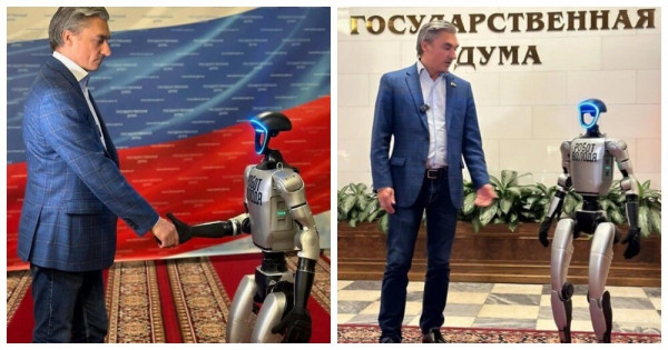 В Госдуму "трудоустроили" китайского робота по имени Володя. Об этом сегодня публично объявил депутат Госдумы от ЛДПР и замглавы комитета по информполитике, технологиям и связи Андрей Свинцов. Как надеется слуга народа, робот сможет заменить собой помощника депутата, однако пока он будет заниматься исключительно физической работой, к документам его не допустят пока не заменят китайский софт. "Это китайская разработка, но внутри софт мы будем импортозамещать. Поэтому мы робота к важным государственным документам в Госдуме не допускаем. Пока робот-помощник депутата - это физический помощник, он будет раздавать атрибутику, выезжать вместе с депутатом в регионы, таскать чемоданы. Мы его сейчас тестируем в качестве фотографа, оператора, чтобы снимать работу депутата. То есть это помощник пока в основном физический. Мы его к документам не допускаем", - сказал Свинцов.Как пояснил Свинцов, робота он "нанял" в качестве эксперимента, но пока Володя не дотягивает до уровня начинающего помощника депутата. Но он верит, что уже через несколько лет роботы станут более совершенными и смогут даже вести агитацию на улицах городов. "Ещё пока он требует постоянной заботы, то есть это уровень пока где-то полуторалетнего ребёнка. Я надеюсь, что всё-таки чем быстрее будут развиваться технологии, тем этот робот будет обладать более широким функционалом, и уже через-год-два ходить по улицам в качестве агитаторов будут в основном роботы. Мы должны постепенно людей разгружать от физического труда и больше нагружать умственным", - заявил Свинцов.В сети обратили внимание, что точно такого же робота, но по имени Гоша, показывали на Петербургском экономическом форуме в шапке-ушанке в июне нынешнего года.Как отмечают СМИ, робот G1 от китайской компании Unitree Robotics серийно выпускается с прошлого года. В России его можно приобрести за 2,5-2,7 млн рублей.