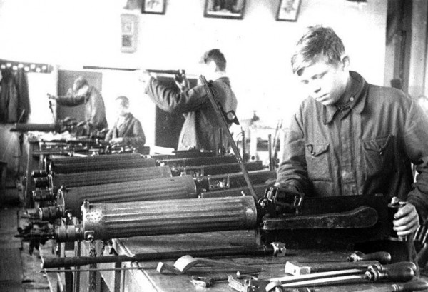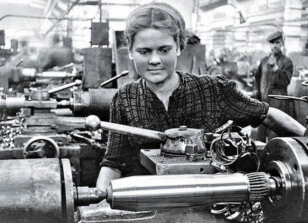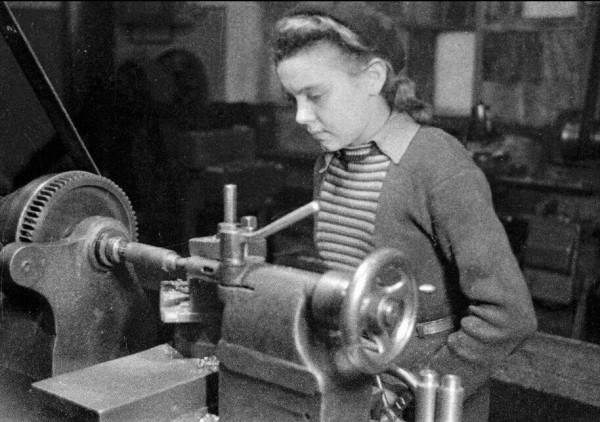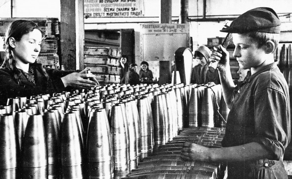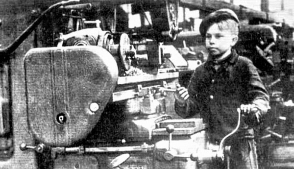 Во время войны особенно тяжело приходилось детям. Им пришлось работать на заводах, в колхозах, на полях, воевать в партизанских отрядах и на фронтах, жить на оккупированных территориях и многое, многое другое. Сегодня хочется вспомнить о детях военного поколения, которые трудились в тылу наравне со взрослыми. Вглядитесь внимательно в эти ставшие в одно мгновение взрослые лица детей. Еще до войны на территории Советского Союза появилось Главное управление трудовых резервов. Управление распределяло подростков по училищам. Во время войны подростков призывали на фабрики и заводы. Около 8 тысяч детей работало только на моторостроительном заводе в Перми. Завод выпускал авиадвигатели. Рабочим было всего по 14 лет, на неквалифицированную работу брали уже с 11 лет. Вспоминая свое военное детство, бывший работник завода вспоминал, что когда уходил в 14 лет, его мама плакала и все спрашивала: "Зачем такому маленькому идти?" С мамой он встретился только после войны в 1946 году, и опять она плакала: "Ты даже не вырос за эти годы". А как тут вырастешь? Если работать иногда приходилось по 29 часов подряд. Правда, после такой смены давали отдых и сытный обед. Да и вообще тяжело приходилось детям, приехавшим издалека на заводы в тыл. Одежды и обуви толком не было. Донашивалось то, что привозили из дома. Очень часто дети даже не уходили ночевать домой - оставались на заводе (спали на ящиках, в кочегарках, в любом свободном уголке). Руководители заводов постепенно стали шить одежду для детей, покупать валенки и другую обувь. Потом это все распределялось между детьми.Средняя смена длилась 16-18 часов. Очень холодно было в огромных цехах, особенно зимой. Даже взрослые часто не выдерживали и сбегали на фронт. По закону детям, которым еще нет 16 лет, не могли работать больше 6 часов в сутки. На многих заводах выпускали приказы по этому поводу, еще дополнительно давали предупреждение о том, чтобы детей не привлекали к ночным и сверхурочным работам. Но рук не хватало, план нужно было выполнять. Поэтому трудовое законодательство особо не выполняли.Бывший рабочий А.Аксенов вспоминал:"Однажды я выполнил план на 570 процентов. Когда в заводской газете про меня написали, что отец может гордиться мной, я счастливый отослал бате заметку на фронт. Батя показал заметку своему командиру и он мне написал очень хорошее письмо с пожеланиями. А вскоре приехал на завод генерал Солдатов и громко всем сказал:"Я иду на Аксенова смотреть". Он меня расцеловал и приказал нас, пацанов, накормить. Вот радость для нас была".Митя Ключин в 1941 году пошел на завод работать на токарном станке. За короткое время Митя освоил работу на двух, а потом и на трех станках. Ему предложили возглавить молодежную бригаду. Митя усовершенствовал производственный процесс, и обработка деталей сократилась в три раза. Его бригада выполняла за смену план по 250-280 процентов. А вот рассказ сталевара: "В конце 1941 года заводу нужно было срочно выполнить задание по выплавке определенного количества стали. А рабочих нет. Начальник цеха привел мне 12 ребятишек-подростков и сказал, что я должен научить их работать возле мартеновских печей. Так постепенно началось их обучение. Сначала они помогали по мелочам-подай-принеси. Потом начал учить их работать с печью. Многие подставляли табуретки, чтобы дотянуться до заслонки печи. Начальн