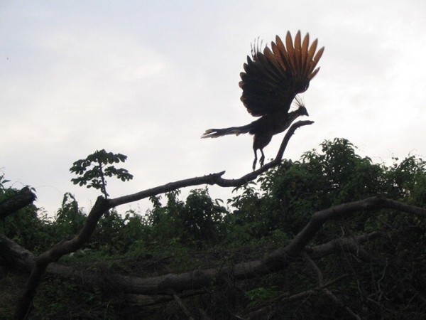 К сожалению, такие клевые хватательно-цеплятельные приспособы есть у этих птиц только на протяжении первых трех месяцев жизни. Затем когти на верхних конечностях просто отваливаются, и гоацин превращается в большую древесную курицу (раньше их относили к курообразным, а сейчас выделили в отдельный отряд), которая не шибко хорошо летает - всего 300-400 метров без отдыха. Так что, когда приходит время взрослеть, они переходят, в основном, на прыжковую форму перемещения в пространстве и из уникальных детишек превращаются в стандартных малоповоротливых увальней. Вот такие южноамериканские пернатые!