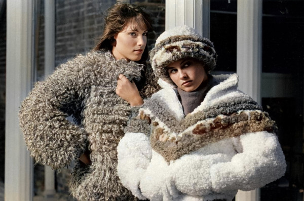 "Модные свитера". США, 1983 год. Модные прогнозисты назвали 1983 "годом свитера", и дизайнеры ответили творениями с животными узорами и пятнами, оборками и жемчугом, а также клеткой и ромбами.