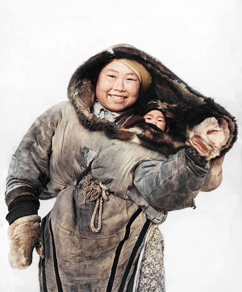 Портрет женщины инуита с ребенком. Аляска, США, 1947 год.