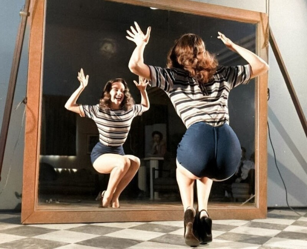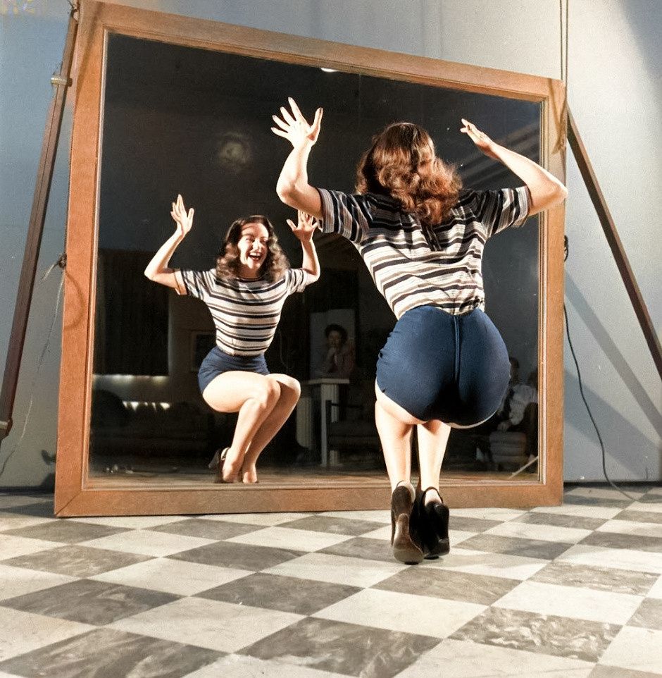 Репетиция американской танцовщицы Betty Dierenger перед зеркалом, 1947 год.