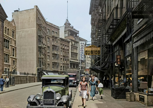 Вид на улицу в Чайнатауне. Нью-Йорк, США, 1930-е годы.