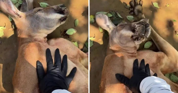 Китаянка пыталась разбудить уснувшего кенгуру, но тот даже ухом не повёл. Вот он, символ истинной лени и спокойствия.