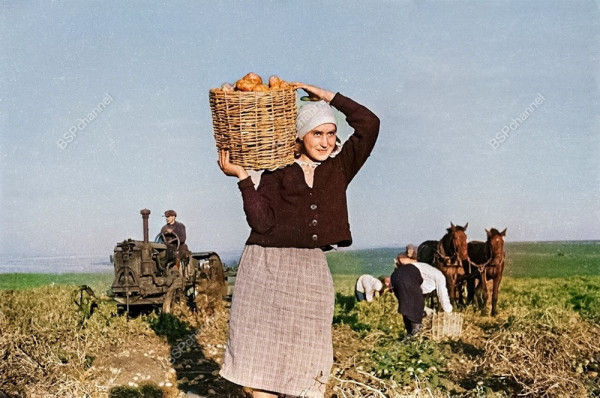 Уборка картофеля на полях имени М.И. Калинина Тамбовской области, 1943 год.