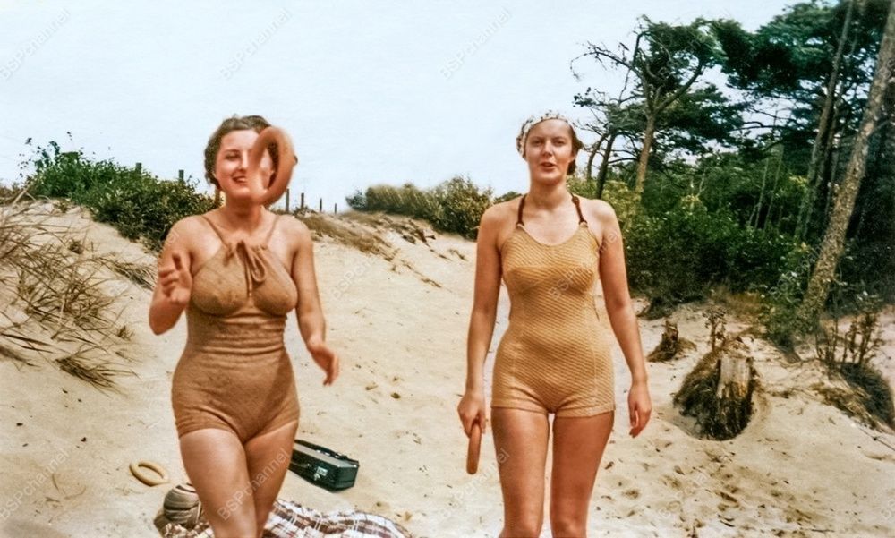 Девушки отдыхают на пляже. Германия, г. Кранц, 1937 год.