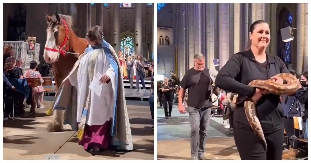В рамках празднования Дня святого Франциска Ассизского, считающегося покровителем животных, в соборе Святого Иоанна Божественного в Нью-Йорке прошла церемония благословения животныхУчастники обряда по очереди подносили своих питомцев, которые получали в точности такое же благословение священника, как и люди.