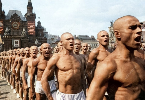 Стремление создать "нового человека" в СССР включало не только идеологическую преданность, но и физическое совершенство: здоровье, силу и выносливость - для труда и обороны. Первым шагом стало создание Всевобуча в 1918 году - системы военизированного обучения для мужчин 18-40 лет. Женщины участвовали на добровольной основе. Уже в 1919 году на Красной площади впервые прошёл парад с участием курсантов и физкультурников - начало традиции массовых спортивных шествий. С 1931 года физкультурные парады стали ежегодными, превратившись в зрелищную демонстрацию мощи и единства советского народа. Физкультура стала обязательным предметом в вузах с 1930 года. Парады пропагандировали спорт, молодость и готовность к защите Родины. Физкультурников называли "боевым резервом Красной Армии". Знаменитый лозунг "Спасибо товарищу Сталину за счастливое детство!" впервые прозвучал на параде 1936 года. В годы войны (1941-1943) парады прервались, но возобновились в 1944-м, а в августе 1945 года - были посвящены Победе в Великой Отечественной войне.