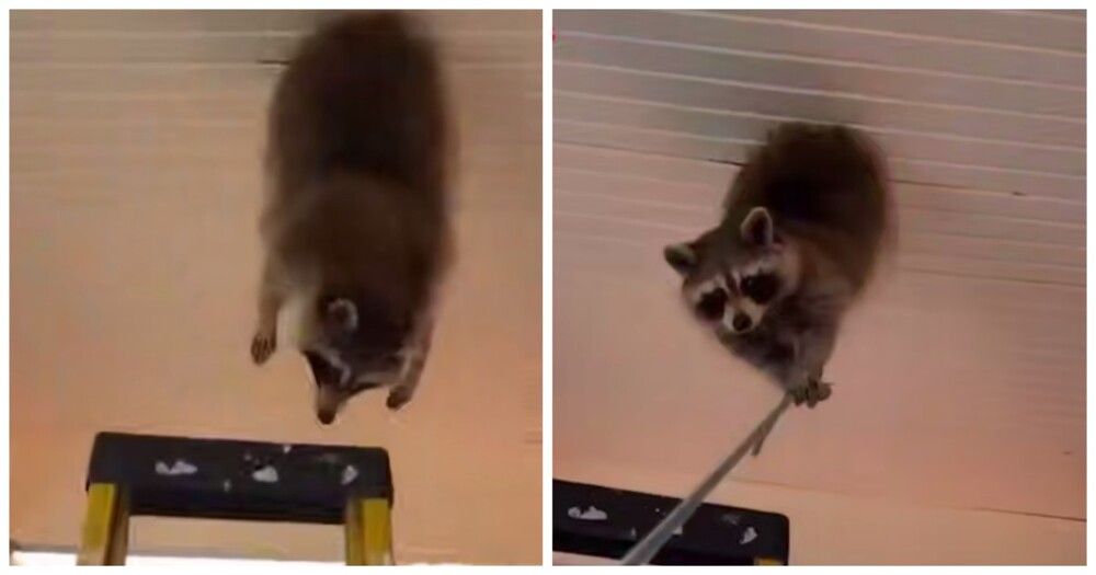 "Всё потому, что кто-то слишком много ест!". Крылатая фраза из мультфильма о Винни-Пухе как нельзя лучше описывает ситуацию, в которой оказался енот. Однако вместо норы Кролика енот застрял в ... "потолке".