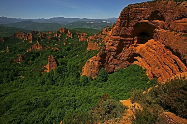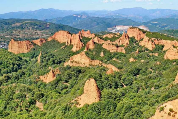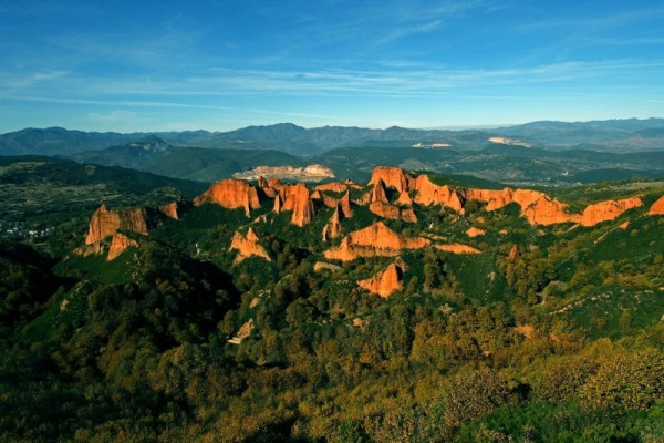 Этот невероятный изрезанный пиками пейзаж из красных гор и зелёных рощ каштановых деревьев стал наследием двухсотлетней хищнической добычи золота, которую вели римляне.