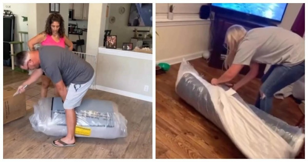 Пользователи рассказали: стоит лишь разрезать упаковку, как прессованный матрас мгновенно расправляется с такой силой, что сбивает с ног всех вокруг, вызывая смех и удивление.