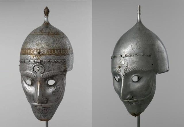 Это шлемы те барантаути, изготовленные из высушенных шкур рыб-ежей.
