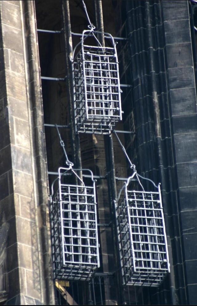 Они были публично замучены и казнены после Мюнстерского восстания 1534-1535 годов. Клетки висят на шпиле церкви Святого Ламберта в Мюнстере по сей день.