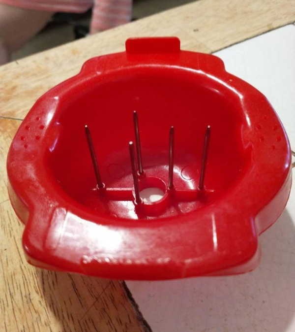 Этот шип нужен, чтобы сделать крошечное отверстие в курином яйце, так оно не потрескается во время варки.