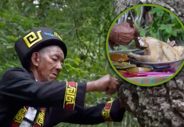 Делает это китайская народность гэлао из провинции Гуйчжоу, эта традиция пришла из времен более тесного единения с природой. Этот ритуал так и называется "Кормление дерева", и он призван обеспечить обильные урожаи. Уровень мышления тут почти первобытный: ты дал что-то от себя дереву и природе (в лице дерева), а оно потом отплатит тебе хорошим урожаем.
