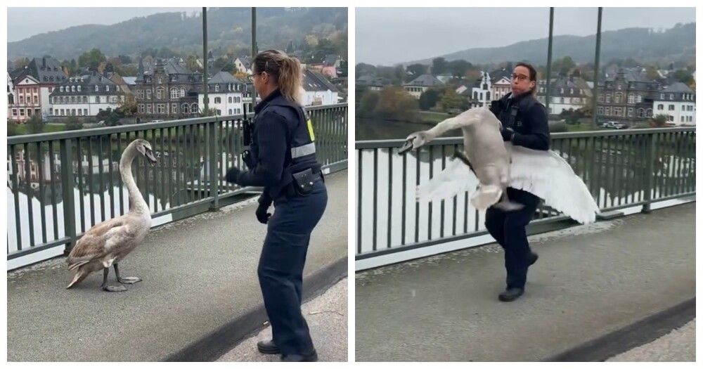 Немецкая полиция поймала лебедя, который выбежал на трассу