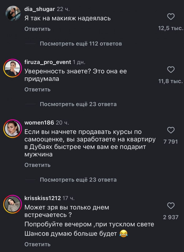 Сейчас она планирует переезд в Китай или Дубай и не тратит время на тех, кто сомневается в её намерениях. На первом свидании для неё крайне важен доход партнёра: она ищет мужчину, готового взять на себя финансовую ответственность и обеспечить высокий уровень жизни. Её цель - встретить того, кто сможет подарить ей квартиру в Дубае и стать надёжным спутником рядом.В комментах, как обычно, весело!)