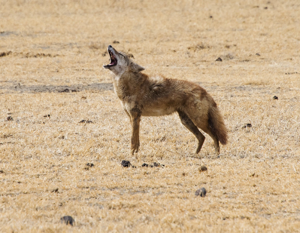 Людей эта зараза тоже избегает. Шакалы посмелее будут, особенно чепрачные. А этого гада поди найди еще! Полтора года кормила кровососов в разных нацпарках, надеясь на встречу. Всё, что мне досталось - цепочка следов на берегу Натрона! Только в мае этого года удалось впервые увидеть волчка у кромки озера в Нгоронгоро издалека. Но, конечно, снять он себя не дал. Зато раскрыл место, где его искать. В следующий заезд, уже в июне, волков как прорвало. Восемь особей за пару дней, причем все достаточно близко. Один даже к машине подошел. Удалось понаблюдать, как волчок мышкует в траве. Туристы, естественно, моего восторга не разделяли и ехали мимо в поисках "Большой пятерки".