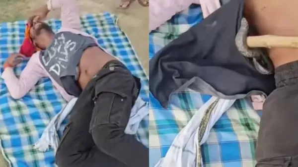 В одном из индийских городов мужчина проснулся от странного ощущения и понял, что под его рубашкой змея. Это оказалась индийская кобра - один из самых опасных видов в Азии. Прохожие, заметив ситуацию, поспешили на помощь и аккуратно помогли мужчине избавиться от незваного гостя.