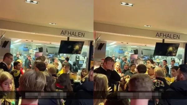 В ресторане McDonald's охранник получает удар кулаком от посетителя. Обычно такие ситуации заканчиваются немедленной реакцией - удалением агрессора. Но в этом случае охранник остаётся абсолютно спокойным и не предпринимает никаких действий.