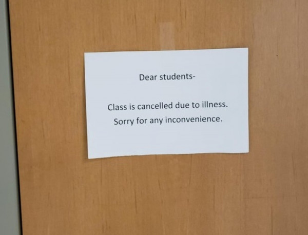 Обидно, когда едешь на занятия рано утром, на улице ливень, все стоит. А приехав на двери аудитории видишь записку от педагога. Не самое доброе утро, однако