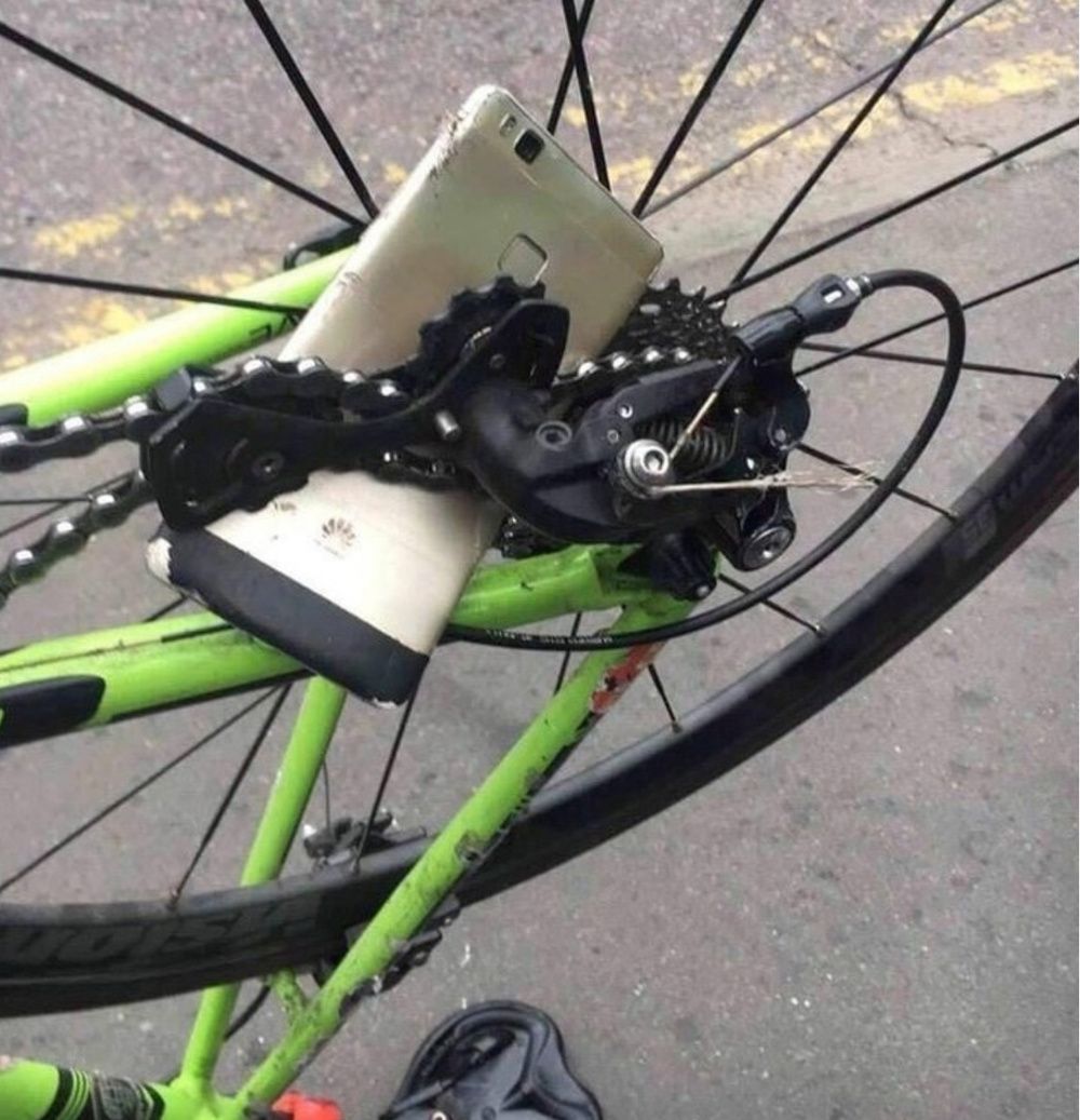 Лучше не использовать сотовый телефон, когда катаешься на велосипеде, иначе будет что-то подобное
