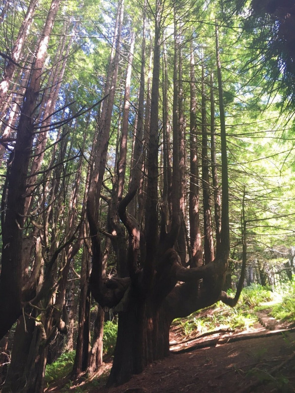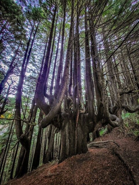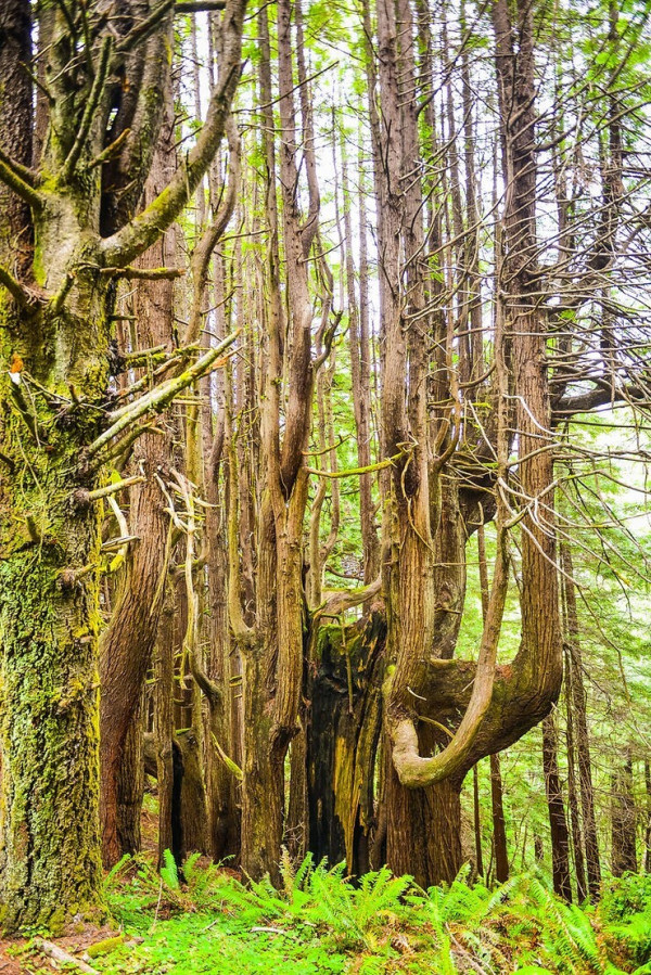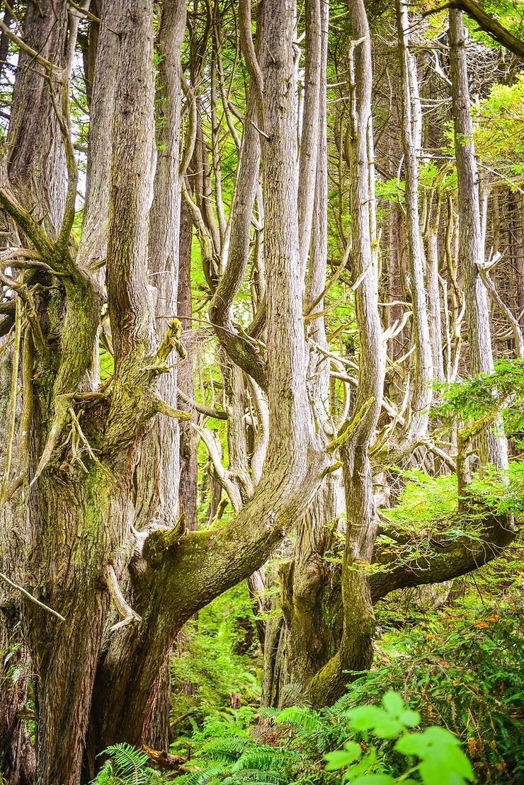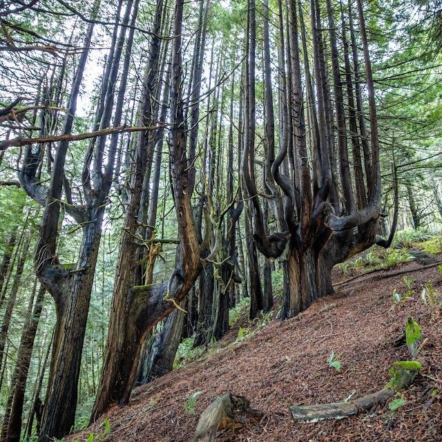 Учёные полагают, что причиной их уникального облика стали солёные морские бризы и свирепые ветра, дующие в этой местности. Постоянное воздействие стихии заставляло стволы деревьев ломаться снова и снова, но жизненная сила секвой была мощнее.