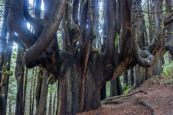 Они не погибали, а продолжали свой рост, выпуская новые побеги из повреждённых стволов. Так, столетие за столетием, сформировались эти причудливые формы, напоминающие гигантские подсвечники. Сотрудники организаций по охране краснокнижных лесов признаются, что нигде более не встречали секвой, изогнутых столь причудливым образом.