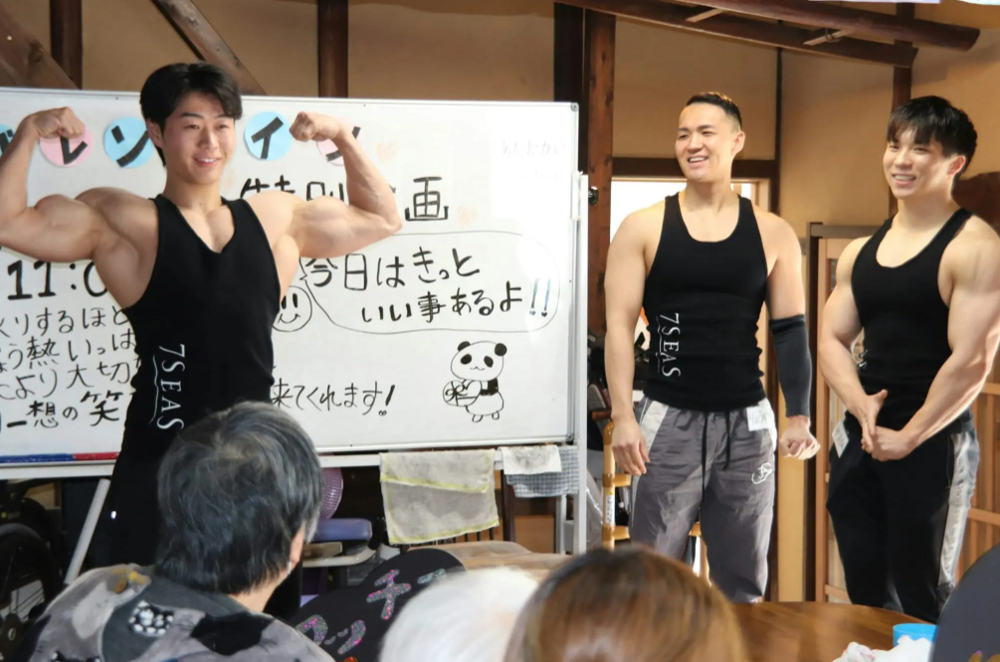 Смотрите чего в Японии придумали! Привлечь качков (без маек!) работать в домах престарелых. Чтобы у бабушек вообще давление зашкалило, наверное.