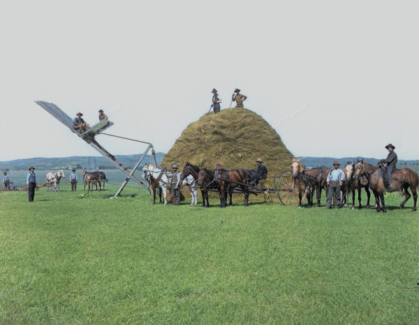 Укладка сена в стога в округе Баффало, штат Небраска, 1903 год.