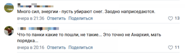 Этот инцидент вызвал широкий общественный резонанс.В соцсетях усомнились, что эти бесноватые -панки, а еще заметили, что если молодёжь мается от безделья, хорошо бы её задействовать на общественно-полезных работах. Хотя бы по очистке города от снега - и руки заняты, и дурные мысли в голову не лезут.