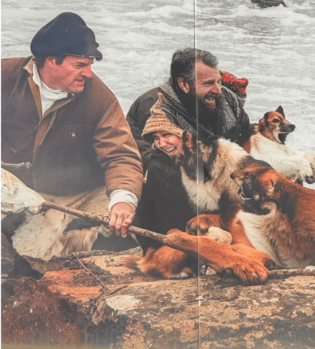 Здесь и собаки с головами птиц мчатся по частично замёрзшему водоёму, и группа изуродованных людей на плоту. Они используют собачью ногу на палке вместо весла. Сложно не заметить снеговика с человеческими глазами и зубами, который пробирается сквозь воду.Это удивительно, учитывая возможности создания изображений с помощью ИИ.Исследования показали, что люди распознают сгенерированные лица лишь в трети случаев.