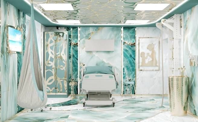 На выбор представлено девять вариантов. Инновационный подход включает звуковое сопровождение, например пение птиц или шум морских волн, а помещения оборудуют удобной мебелью для матери, ребенка и сопровождающего партнера.