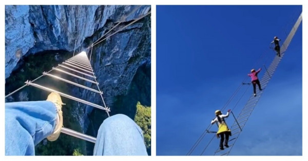 На горе Цисин в национальном парке Чжанцзяцзе в китайской провинции Хунань есть экстремальный аттракцион под названием "Небесная лестница". Он представляет собой лестницу, натянутую на высоте более 1500 метров между двумя скалами.