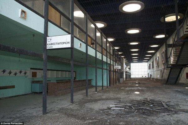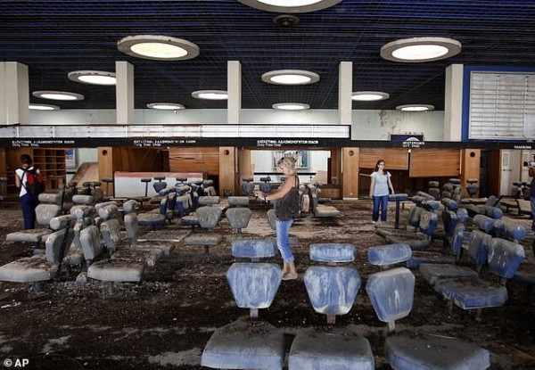 Несмотря на отсутствие нескольких букв, большая вывеска аэропорта остаётся читаемой. Однако единственные признаки жизни в эти дни - голуби, воркующие на крыше, и завывание ветра, проникающего сквозь разбитые окна.Облупившиеся рекламные щиты над стойками регистрации обещают доставить путешественников "на край света".В зале вылета наверху пусто. Пыльные кресла, похожие на те, что из старых научно-фантастических фильмов, покрыты голубиным помётом.