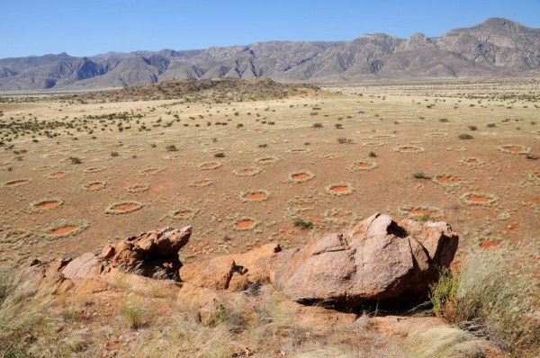 В пустынных предгорьях и на травянистых равнинах юга Африки природа рисует свои загадочные узоры. Идеально круглые проплешины посреди растительности, словно отметины от невидимых ног, появляются и исчезают сами по себе.