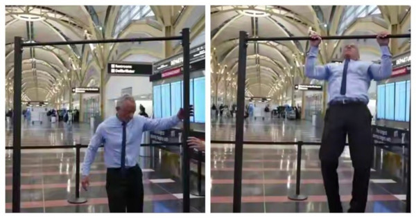 В аэропорту имени Рональда Рейгана в Вашингтоне после сообщения о новых инвестициях в американские авиагавани министры устроили соревнование по подтягиваниям.Кеннеди-младший подтянулся 20 раз, хотя последнее далось ему с заметным усилием.Министр Даффи, которому 54 года, сделал 10 подтягиванийЕго дочь справилась с 13. Лидером стал фитнес-блогер Пол Саладино, который выполнил 21 подтягивание.