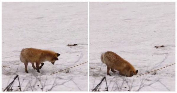 Лиса демонстрирует свои навыки "мышкования".